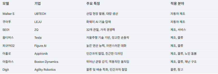 2025년 현재, 다양한 휴머노이드 로봇 모델들이 개발되어 각자의 특징과 기술적 진보를 보여주고 있습니다.